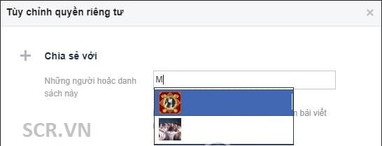 Để chỉ ẩn, hoặc chỉ hiện với một số người cụ thể thì cần nhấn vào Tùy chỉnh. Lúc này có 2 mục khác nhau để tùy chỉnh quyền riêng tư. Nếu muốn chia sẻ với người cụ thể, nhập tên tài khoản Facebook vào thanh bên cạnh. Hoặc có thể chọn luôn Bạn bè hay Bạn của bạn bè để nhìn thấy danh sách bạn bè của bạn.