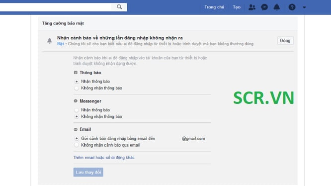 Bạn cũng có thể đăng ký nhận thông báo về đăng nhập không nhận ra. Để đăng ký, bạn vào mục Bảo mật và đăng nhập của Cài đặt, chọn nhận thông báo. Sau khi đăng ký, Facebook sẽ gửi cảnh báo nếu có ai đó đăng nhập từ một thiết bị hoặc trình duyệt bạn không thường sử dụng. Song song đó, facebook sẽ hướng dẫn bạn các bước để bảo mật tài khoản.