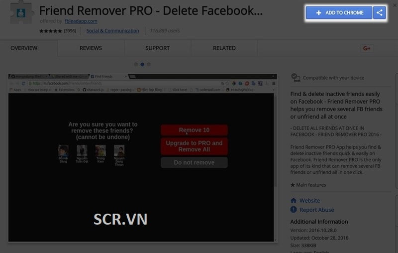 Bước 1: Các bạn vào trình duyệt Chrome và cài Extention Friend Remover PRO vào Chrome.