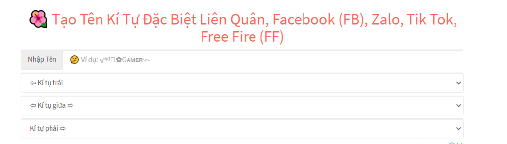 B2: Điền tên bạn muốn tạo và bấm chọn các ký tự ở các bên trái, phải, giữa.